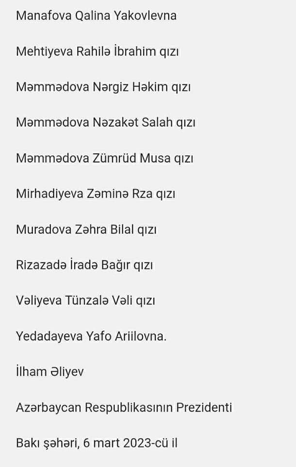 Bu ali mükafata layiq görüldüyüm üçün möhtərəm cənab Prezident İlham Əliyev, Sizə dərin təşəkkürümü bildirirəm. Mənə göstərilən bu yüksək etimadı daim doğrultmağa çalışacağam. 🙏